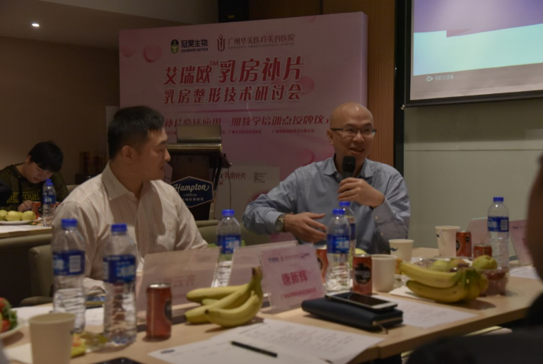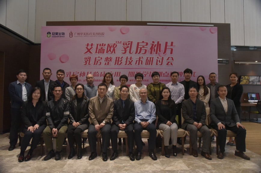 会议现场冠昊生物科技股份有限公司为广州华美医疗美容医院颁发授牌“艾瑞欧乳房补片临床应用一期教学培训点”,广州华美副总经理张晨钟先生、外科主任郝永生主任、崔东主任出席授牌仪式。至此,艾瑞欧乳房补片临床应用教学培训点正式落户广州华美。