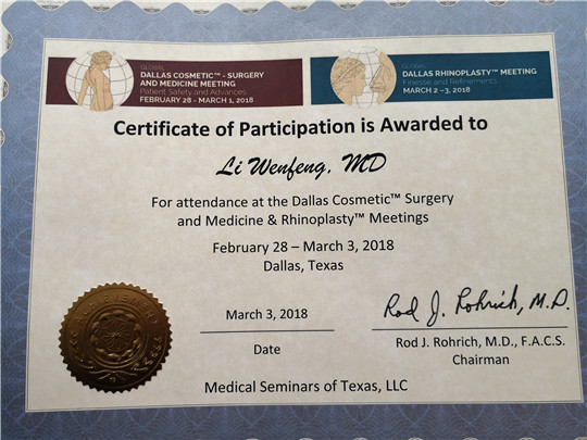 本次研讨会,值得中国医美行业骄傲的是广州华美鼻整形科代表之一李文锋主任向全展示中国达拉斯隆鼻先进的技术,李文锋主任从事整形美容行业多年,具有扎实的理论基础和良好的临床技艺。他擅长各种高难度的整形美容手术,并且精细可靠,保持更好的手术效果,现场掌声雷动,在场各国医师都对李文锋主任对于鼻整形的专业理论和前沿技术表示赞赏,并发表感谢其对促进鼻整形行业技术学术的进步和发展。