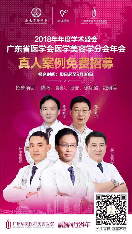 11月2-4日,由广东省医学会主办,广东省医学会医学美容学分会承办,南方医院、广州华美医疗美容医院联合协办的高规格医美盛会——2018年广东省医学会医学美容学学术年会将在广州隆重启幕!