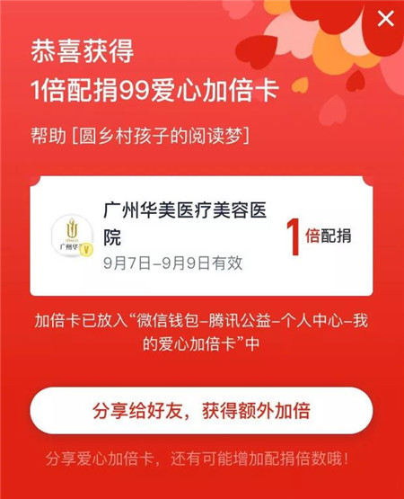 9月6日前领取爱心加倍卡并转发分享可以再加倍
