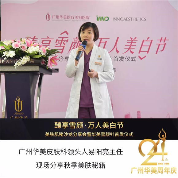 10月26日,臻享雪颜·万人美白节——美肤肌秘沙龙分享会暨华美雪颜针发布仪式成功举办!广州华美美容皮肤医师团、国际认证高级护肤医师刘霞等医师医师出席此次活动,共同见证广州华美【雪颜针】震撼发布!