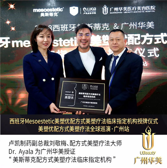 会上,副总裁刘敬梅、配方式美塑疗法大师Dr.Ayala代表美斯蒂克品牌为广州华美授证——美斯蒂克配方式美塑疗法临床指定机构!并为广州华美注射美容医师团授证——西班牙美斯蒂克配方式美塑疗法首席临床导师!