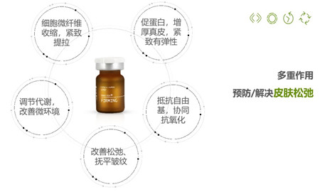 增加皮肤张力,显著改善皮肤紧致程度;促进细胞胞内滤泡形成,增加皮肤厚度,舒缓皮肤皱纹深度;显著提高I、III型胶原的合成,降低金属蛋白酶抑制剂TIMP-1活性,从而增加皮肤胶原蛋白含量,改善皮肤衰老表现;增加皮肤含水量,并提高皮肤真皮层的厚度。