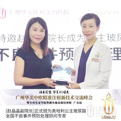此次会议的举办,不仅是中欧美学思路的碰撞,更是将赵院对于公主玻尿酸的注射心得进行更广范围的传播,同时也是对于广州华美医师技术实力与行业地位的认可。而广州华美也再添荣誉,成为奥地利公主玻尿酸广东区指定医学培训机构。广州华美赵晶晶副院长获奥地利公主玻尿酸广东区不良事件预防处理顾问医师。
